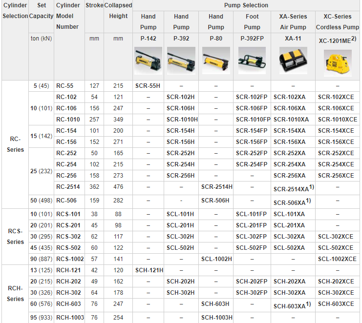 – Model kích : RCH-121 ( 13 tấn, hành trình 42mm)
