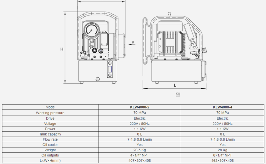 – Thông số chính của Bơm cho cờ lê thủy lực KLW4000 như sau:
