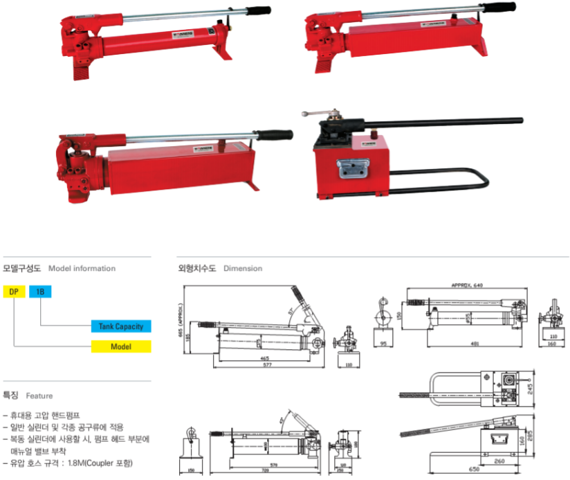 + Thông tin chi tiết về Bơm tay kích thủy lực 1 chiều DP-1B( 0.7 lít)