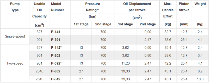 + Thông tin chi tiết về Bơm tay kích thủy lực 1 chiều P-141( 327 cm3)