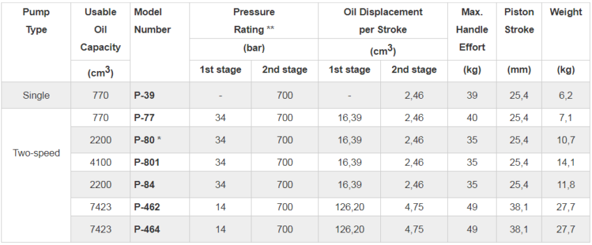 + Thông tin chi tiết về Bơm tay kích thủy lực 1 chiều P-80 ( 2200 cm3)
