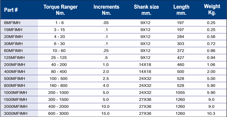 -Thông số chính của cờ lê lực đầu rời 500MFIMH như sau: