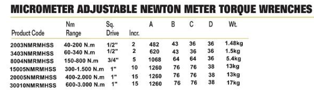 -Thông số chính của cờ lê lực đầu liền 20005NMRMHSS như sau: