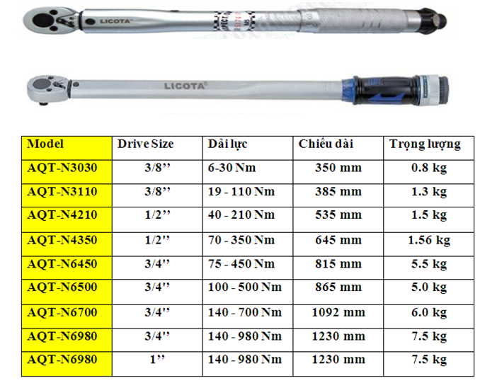 Cờ lê lực AQT-N6700( 140-700 Nm) là sản phẩm của hãng Licota/Taiwan