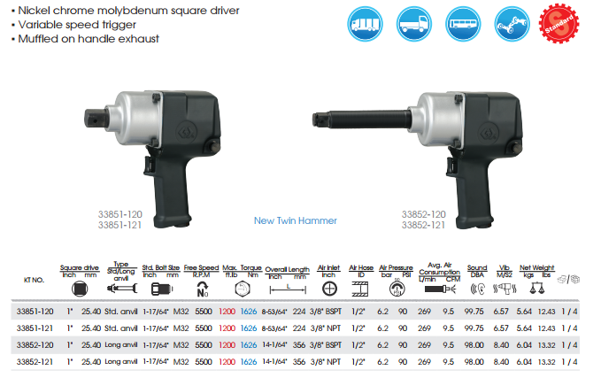 *Thông số kỹ thuật của súng siết bu lông khí nén 33851-120