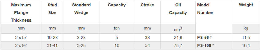 + Thông tin chi tiết về tách mặt bích thủy lực FS-109