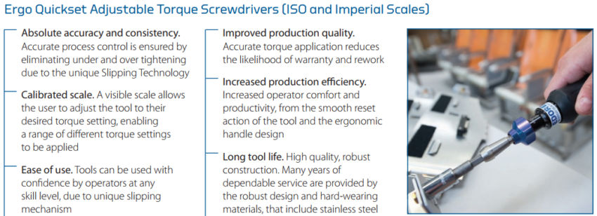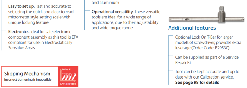 – Với cơ cấu trượt tự động và độ chính xác cao(+/-1%) Tô vít lực được dùng chủ yếu trong các nhà máy lắp ráp, công trình để đảm bảo được chất lượng sản phẩm.