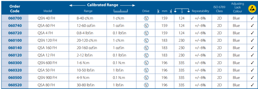 + Dải lực: 8-40 cNm